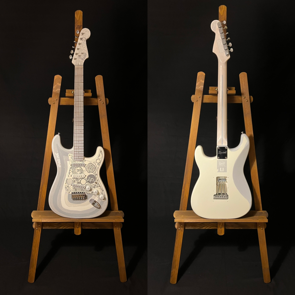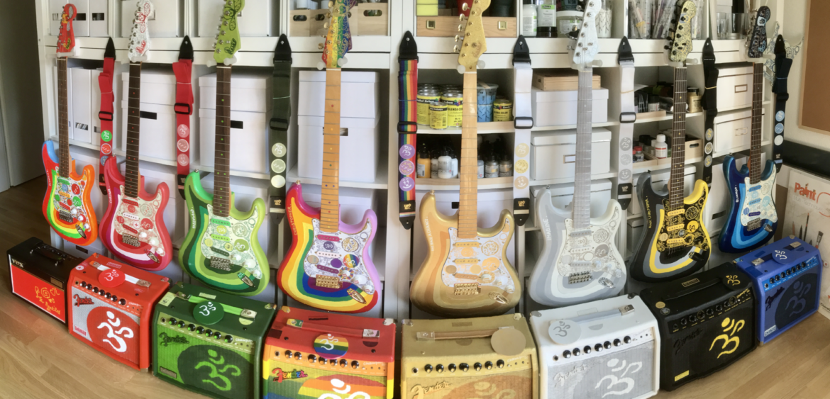 Die Kollektion „Let’s Share / ROCKY SE“ umfasst verschiedene Modelle, jedoch alle auf Basis einer Stratocaster. Es sind ausschliesslich Unikate, da zwar das Muster der Bemalung nah am Original angelehnt ist, aber die Farbgestaltung thematisiert und sehr unterschiedlich ist. SE steht für Special Edition. Zu jeder E-Gitarre gehört ein E-Gitarren-Verstärker, der adäquat zur E-Gitarre gestaltet wurde. Diese Kollektion werde ich von Zeit zu Zeit ergänzen.